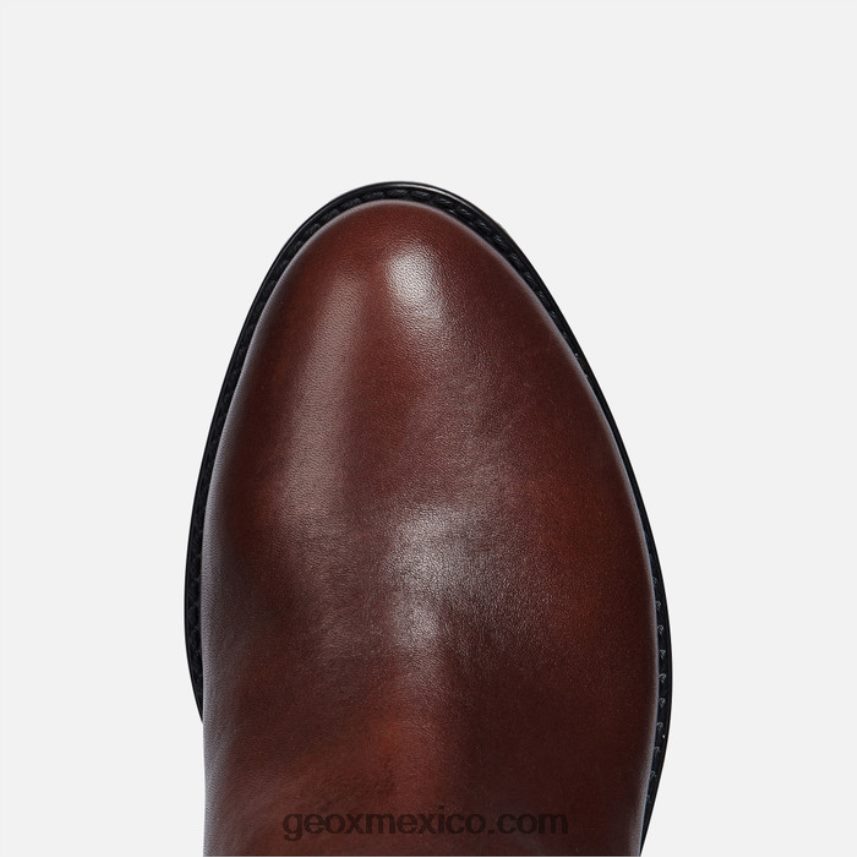 bota de estilo ecuestre para mujer con una estética atemporal y un diseño cómodo y transpirable. Con un equilibrio perfecto entre el estilo clásico y el atractivo suave, la bota Felicity en cuero marrón liso tiene una estética refinada y sobria que la hace perfecta para actividades de ocio y brinda una sensación suprema de bienestar al caminar.la clásica suela de goma geox se basa en una patente exclusiva: la combinación de la suela perforada y la resistente membrana transpirable e impermeable permiten regular la temperatura de forma natural, creando así el microclima perfecto en el interior del zapato que mantiene los pies secos y cómodos para todo el mundo día.