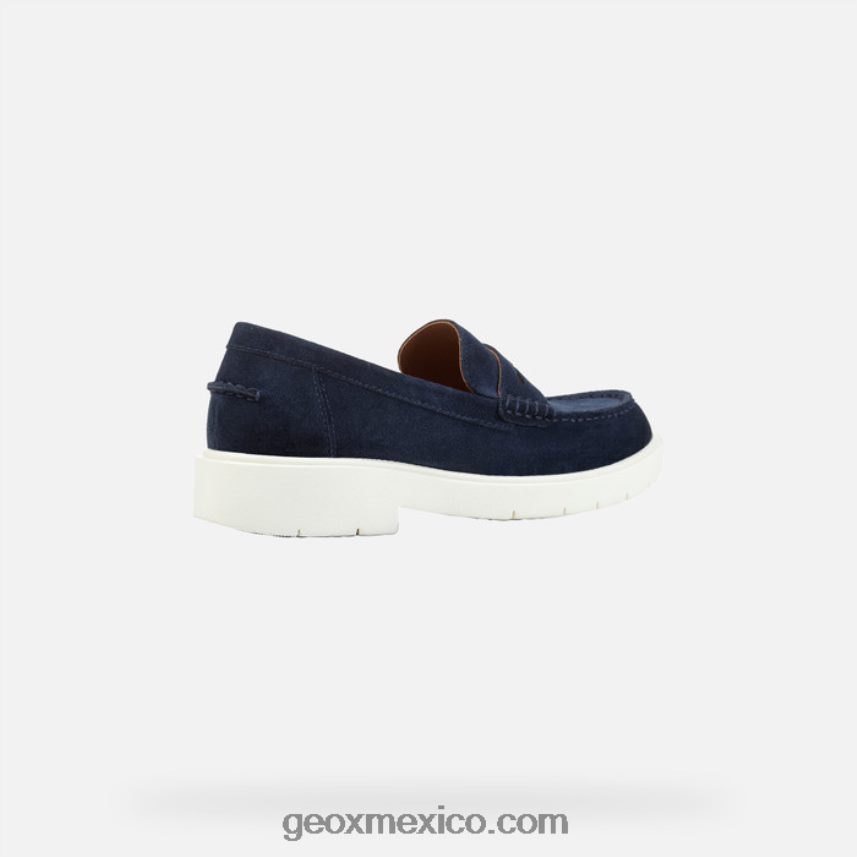 mocasines innovadores ultraamortiguadores para mujer repletos de estilo contemporáneo. spherica ec1 a es una nueva versión contemporánea del clásico mocasín penny, mejorado con niveles incomparables de comodidad para una maravillosa sensación de bienestar durante todo el día. Confeccionado en ante en una paleta azul marino fácil de combinar, descansa sobre una suela dentada en contraste.