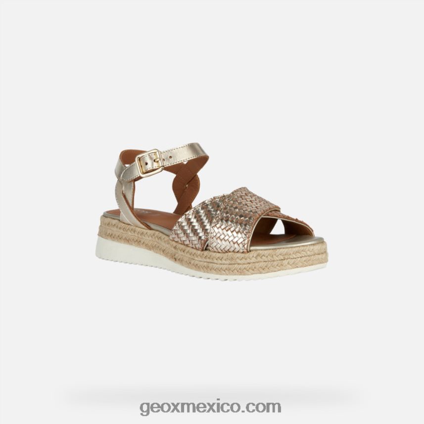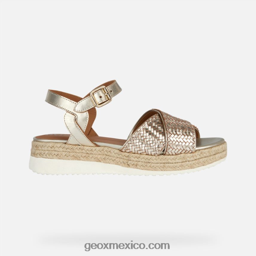 sandalia ligera, cómoda y transpirable para mujer: una excelente elección para el día a día. elaborado con cuero metalizado en una brillante paleta de oro claro, descansa sobre una cómoda cuña baja hecha de cuerda de yute para una vibra veraniega. Perfecta tanto para el estilo urbano como para las fiestas, eolie es una forma ideal de completar conjuntos informales con un toque casual-chic.transpirabilidad ligerezacaracterísticas