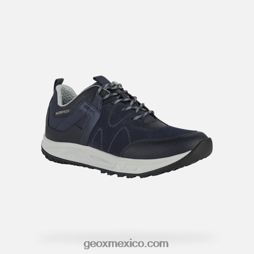 zapatilla deportiva de corte bajo impermeable y transpirable para mujer con un estilo casual y un look activo. Inspirándose en un diseño de zapatillas para correr, Delray abx se ha confeccionado con una combinación de ante y un material con efecto nubuck en una paleta de mezclilla oscura de tendencia. es un calzado ideal en la ciudad o para actividades fuera de servicio incluso con mal tiempo, proporcionando tanto funcionalidad como sensación de bienestar.
