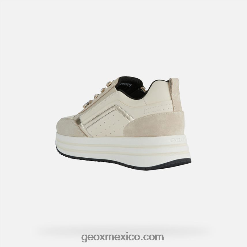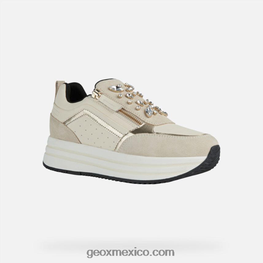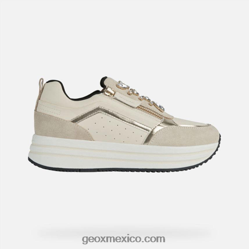 zapatos deportivos transpirables para mujer con cremallera lateral, cargados de encanto contemporáneo y atractivo a la moda. la parte superior se presenta en una paleta de color beige claro y blanquecino adornada con piedras preciosas y detalles dorados y descansa sobre una suela gruesa. Confeccionado con napa y ante, kency elevará cualquier atuendo informal para todos los días con su estética sofisticada y llamativa.