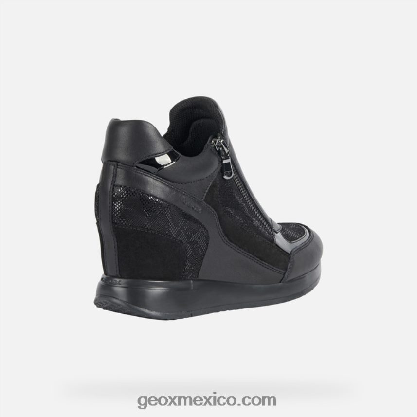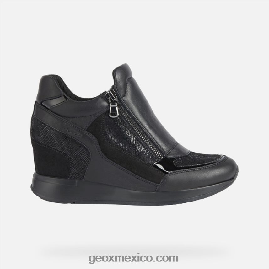 zapatos deportivos cómodos y transpirables para mujer con una estética de zapatillas para correr y un ambiente contemporáneo. Confeccionada en suave napa y cuero estampado, esta versión completamente negra de nydame es una adición versátil a cualquier look informal de todos los días. con una suela de cuña particularmente cómoda, emana inconfundibles matices de zapatillas para correr que resaltan la elegante belleza de su silueta contemporánea.transpirabilidadligerezacaracterísticas